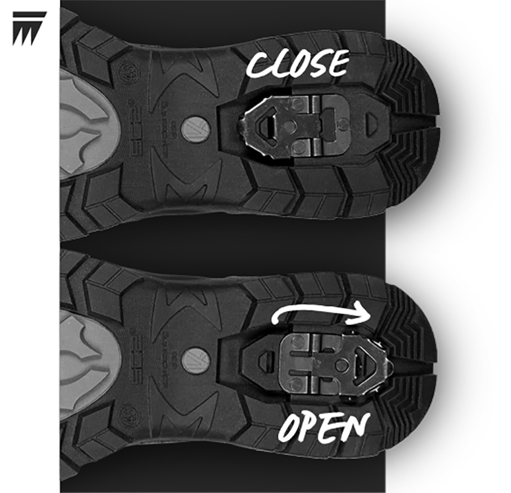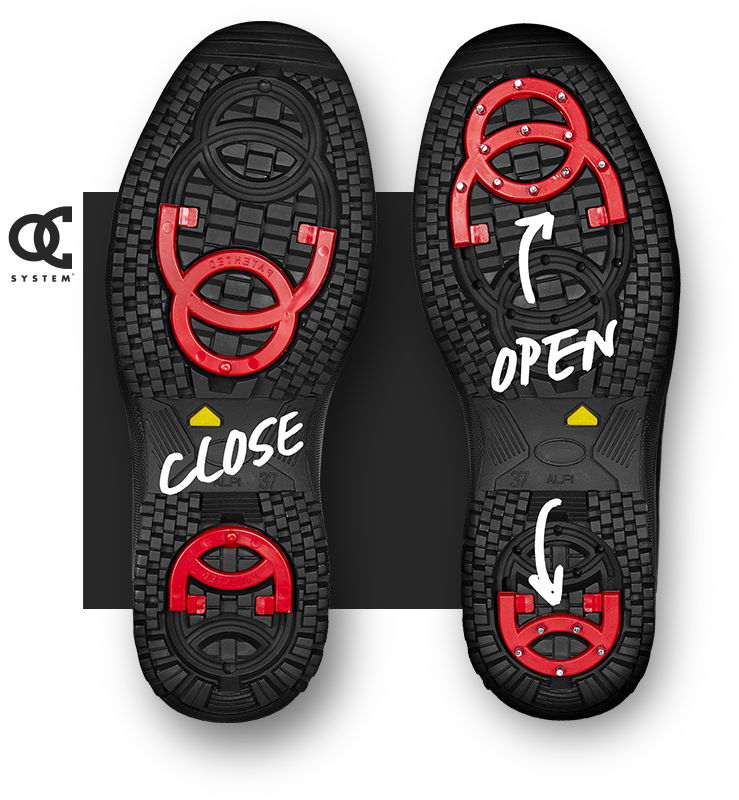 - Crampons amovibles intégrés à l’arrière de la semelle.