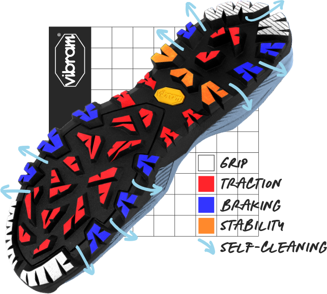 - Semelle assurant une meilleure accroche sur les terrains accidentés.
